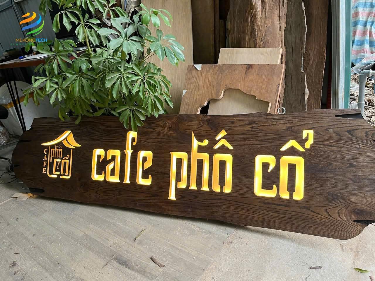 Bảng hiệu gỗ đèn LED không chỉ là công cụ quảng bá mà còn là một phần trang trí nghệ thuật cho không gian kinh doanh.