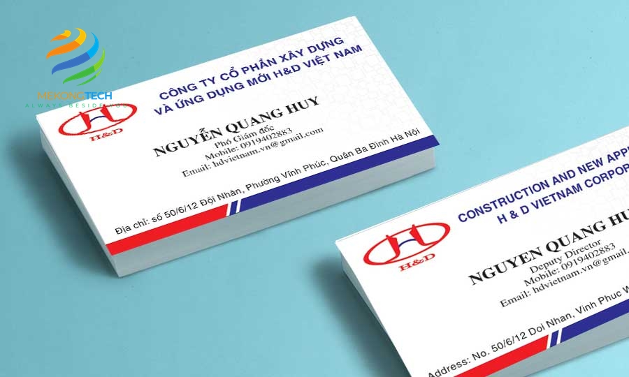 In Danh thiếp Mekong Tech Việt Nam mang đến cho khách hàng dịch vụ thiết kế và in name card – in danh thiếp theo yêu cầu, giá tốt. In trên nhiều chất liệu, từ dày đến mỏng, từ đơn giản đến sang trọng với nhiều kiểu dáng kích thước. Sử dụng công nghệ in hiện đại như in kỹ thuật số, in offset…