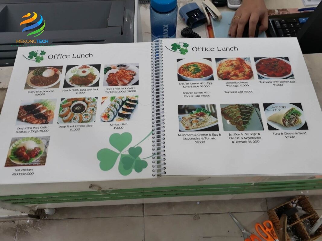 Quy trình in ấn menu nhựa bao gồm nhiều bước kỹ thuật để đảm bảo sản phẩm cuối cùng đạt chất lượng cao nhất. Đầu tiên, việc thiết kế menu cần được thực hiện bởi các chuyên gia có kinh nghiệm, đảm bảo rằng nội dung và hình ảnh được sắp xếp hợp lý và thu hút. Sau khi thiết kế hoàn tất, công đoạn in ấn sẽ được thực hiện bằng công nghệ in hiện đại, giúp màu sắc và hình ảnh sắc nét, chân thực.