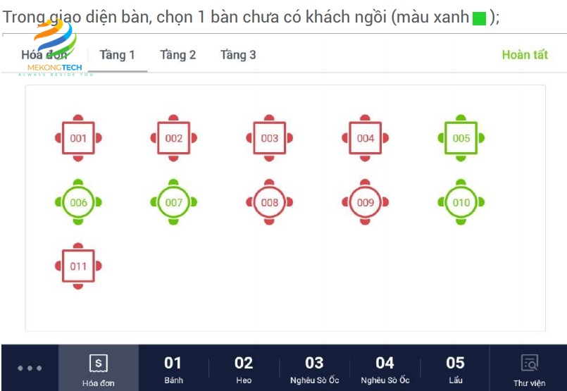 - Quản lý bàn: Bạn sẽ không còn phải lo lắng khi quán quá đông nhưng lại không biết khách hàng ngồi ở đâu. Với tính năng quản lý bàn, bạn có thể gọi món, thanh toán, tạo và sắp xếp bàn theo khu vực, quản lý trạng thái phục vụ theo bàn chỉ với vài bước đơn giản.