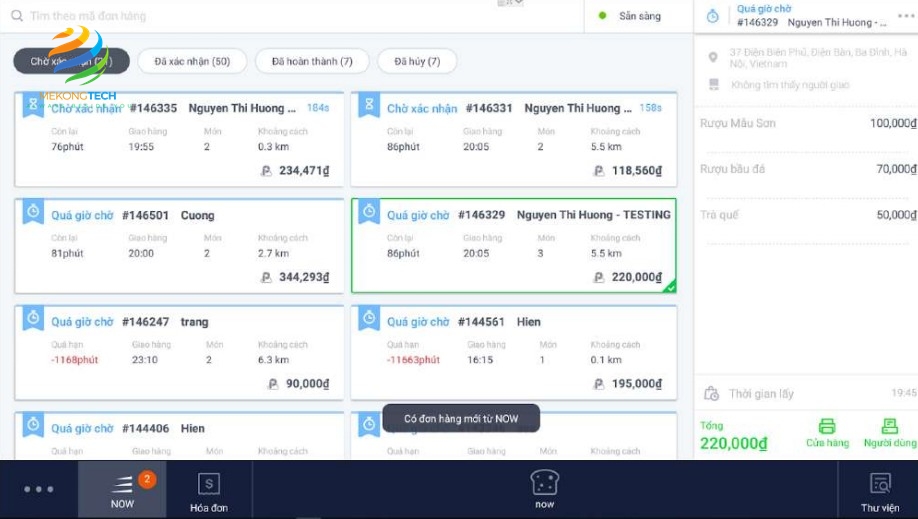 - Quản lý giao hàng (Chỉ có trên Sunmi): Nhờ vào việc tích hợp dịch vụ giao thức ăn trực tuyến shopeefood.vn đã giúp việc quản lý và tự động hóa giao hàng nhanh hơn. Việc quản lý các đơn hàng từ shopeefood.vn trên hệ thống Ocha POS trở nên dễ dàng hơn. Các đơn hàng luôn được đồng bộ trên Ocha và Now Delivery nên có thể dễ dàng chỉnh sửa món, hủy đơn trên shopeefood.vn thông qua Ocha chỉ với vài nút chạm. Nhưng tính năng này chỉ sử dụng được khi bạn mua máy Sunmi.
