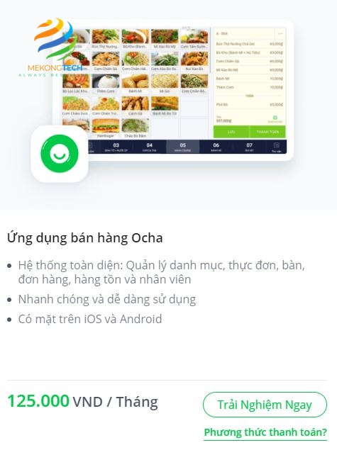 Với mức giá chỉ từ 125,000vnđ chủ cửa hàng đã có thể sử dụng phần mềm quản lý bán hàng Ocha POS với đầy đủ chức năng, đáp ứng mọi nhu cầu từ gọi món, thanh toán, quản lý hàng tồn, nhân viên và theo dõi hiệu suất qua báo cáo theo thời gian thực.